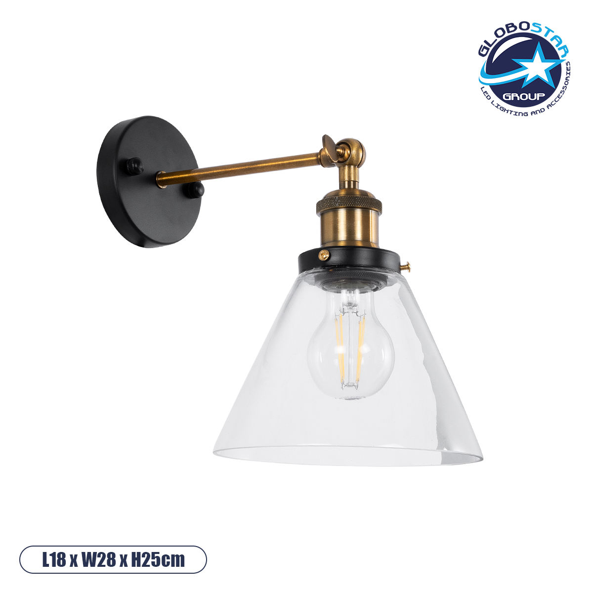 GLOBOSTAR® BINGLEY 01074 Vintage Φωτιστικό Τοίχου – Απλίκα με Ντουί 1 x E27 AC 220-240V IP20 – Διάφανο & Χρυσό – Μ18 x Π28 x Υ25cm