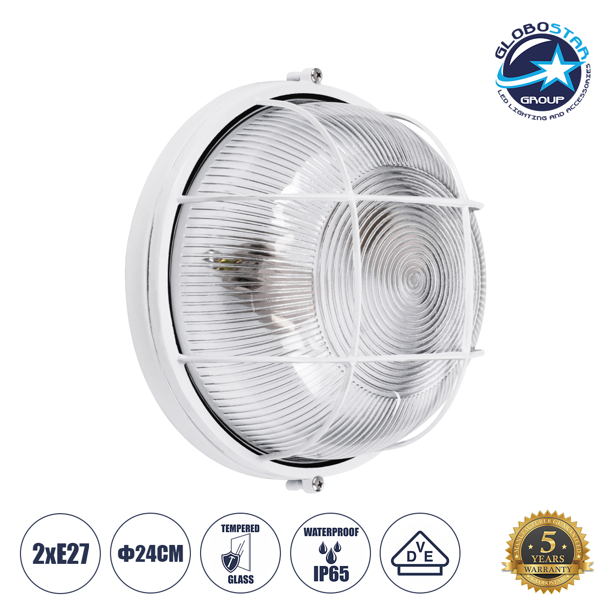 GLOBOSTAR® BOATLIGHT 61588 Vintage Φωτιστικό Καραβοχελώνα Τοίχου & Οροφής με Ντουί 2 x E27 AC 220-240V Αδιάβροχο IP65 – Λευκό Ματ – Μ24 x Π24 x Υ11cm