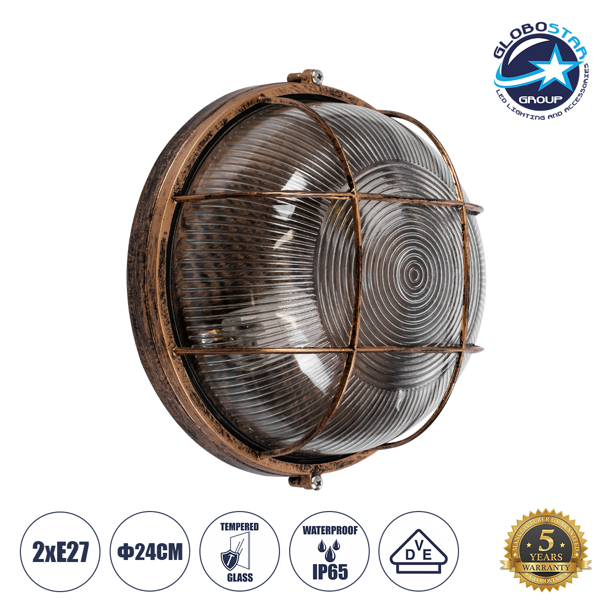GLOBOSTAR® BOATLIGHT 61590 Vintage Φωτιστικό Καραβοχελώνα Τοίχου & Οροφής με Ντουί 2 x E27 AC 220-240V Αδιάβροχο IP65 – Χάλκινο Παλαιωμένο Εφέ Σκουριάς Ματ – Μ24 x Π24 x Υ11cm