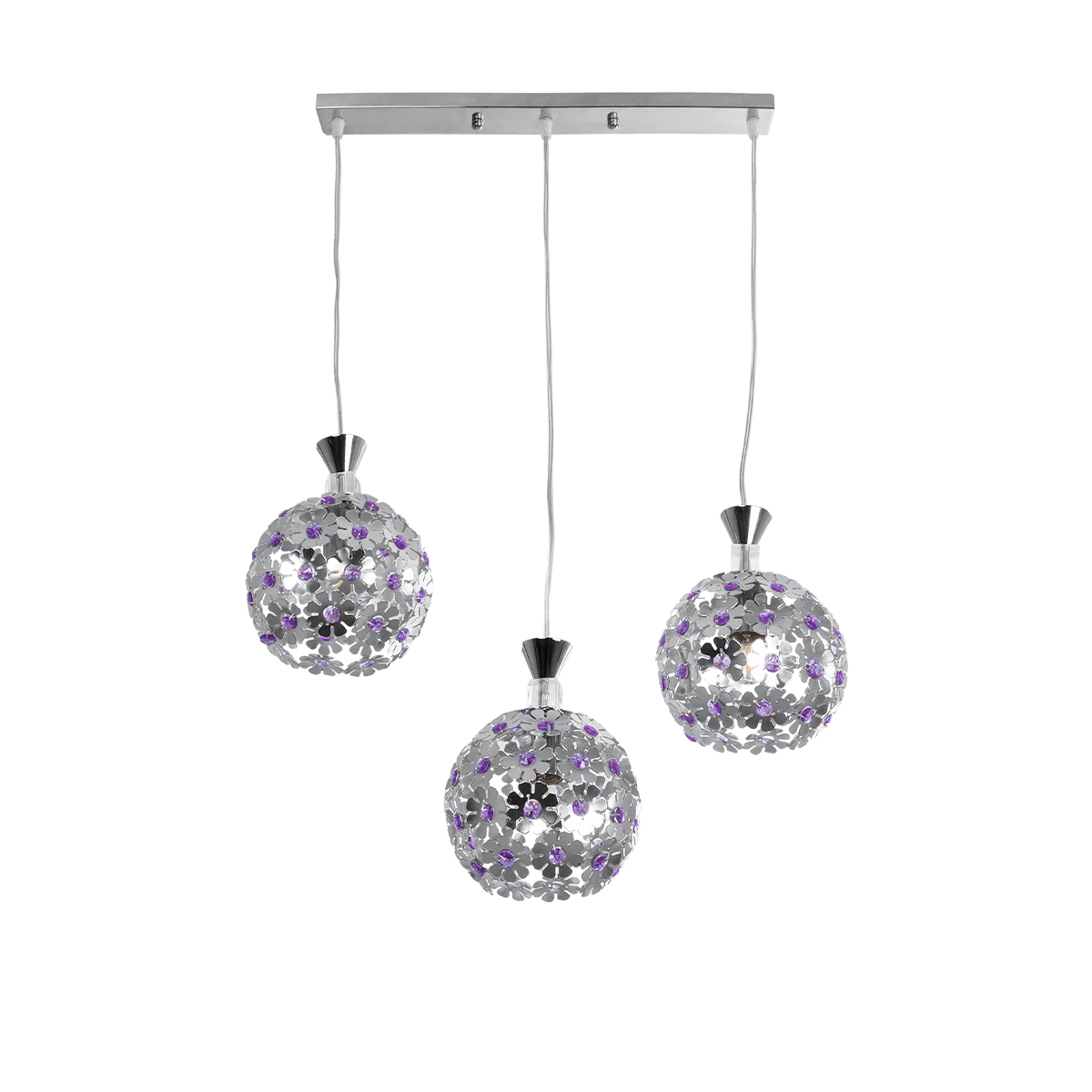 GLOBOSTAR® BOUQUET 01249 Μοντέρνο Κρεμαστό Φωτιστικό Οροφής με Ντουί 3 x E27 AC 220-240V IP20 – Ασημί & Μωβ – Μ66 x Π18 x Υ24cm