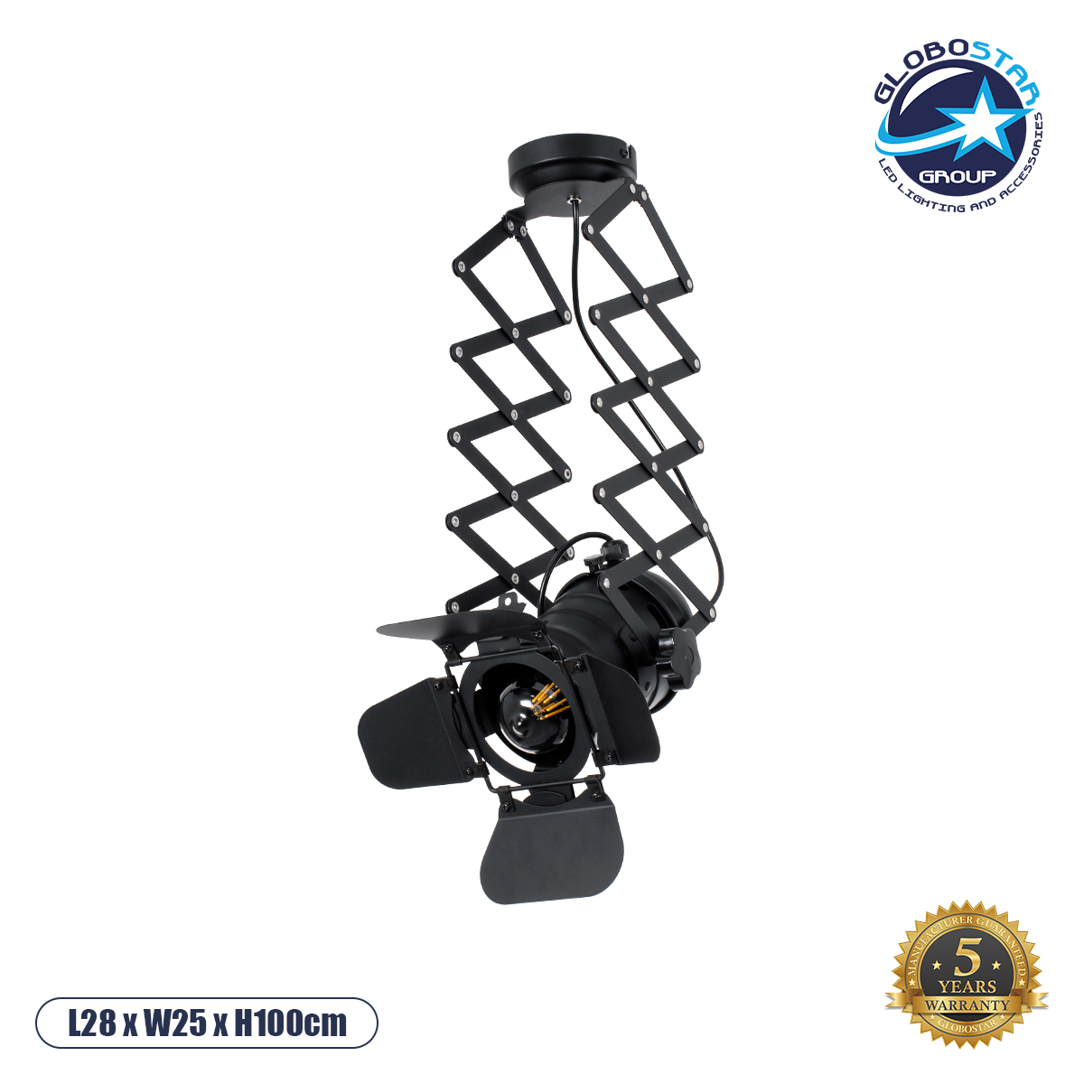 GLOBOSTAR® BROADWAY 01140 Vintage Φωτιστικό Οροφής με Ντουί 1 x E27 AC 220-240V IP20 – Μαύρο – Μ28 x Π25 x Υ100cm