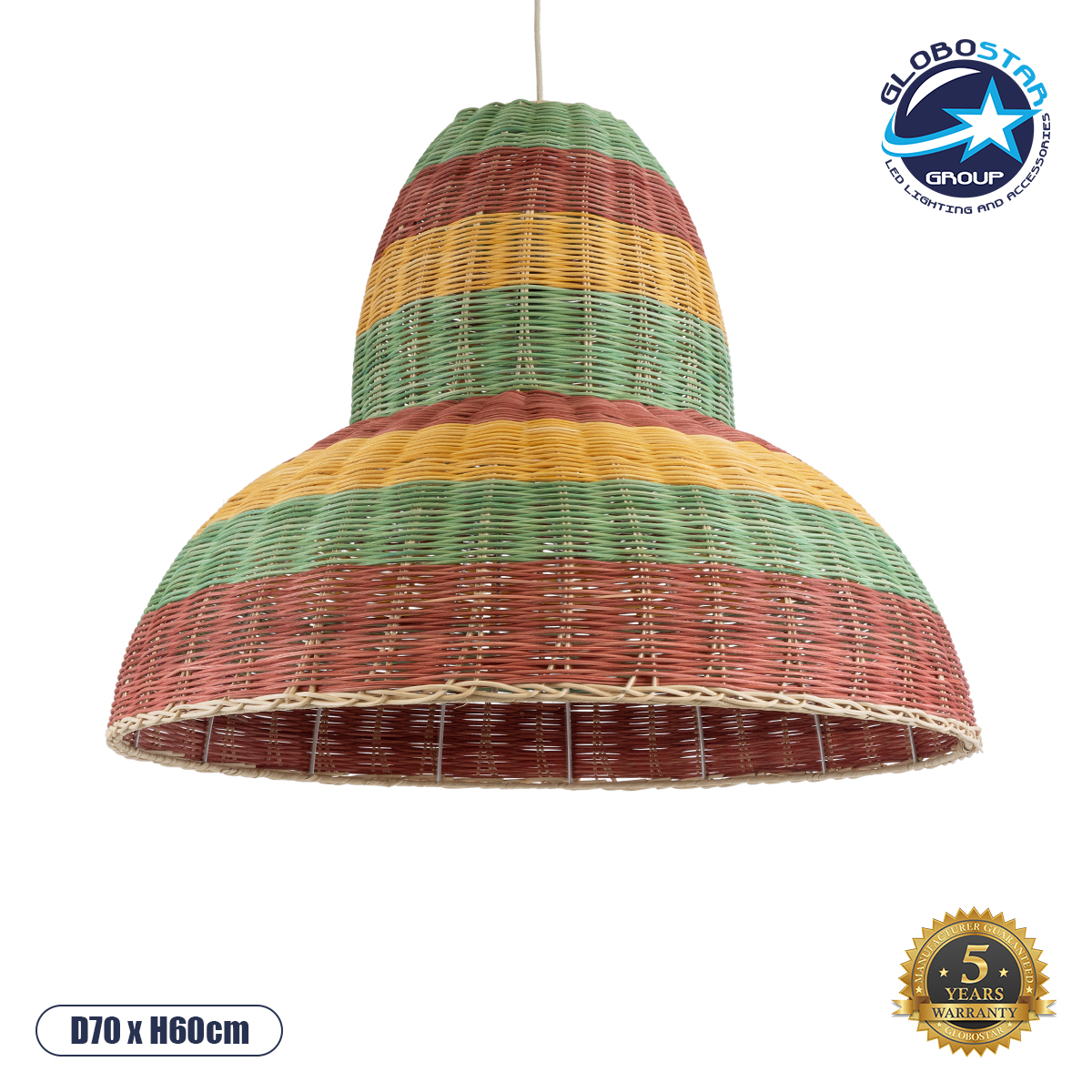GLOBOSTAR® CABALLEROS 02058 Boho Κρεμαστό Φωτιστικό Οροφής με Ντουί 1 x E27 AC 220-240V IP20 – Πολύχρωμο – Μ70 x Π70 x Υ60cm
