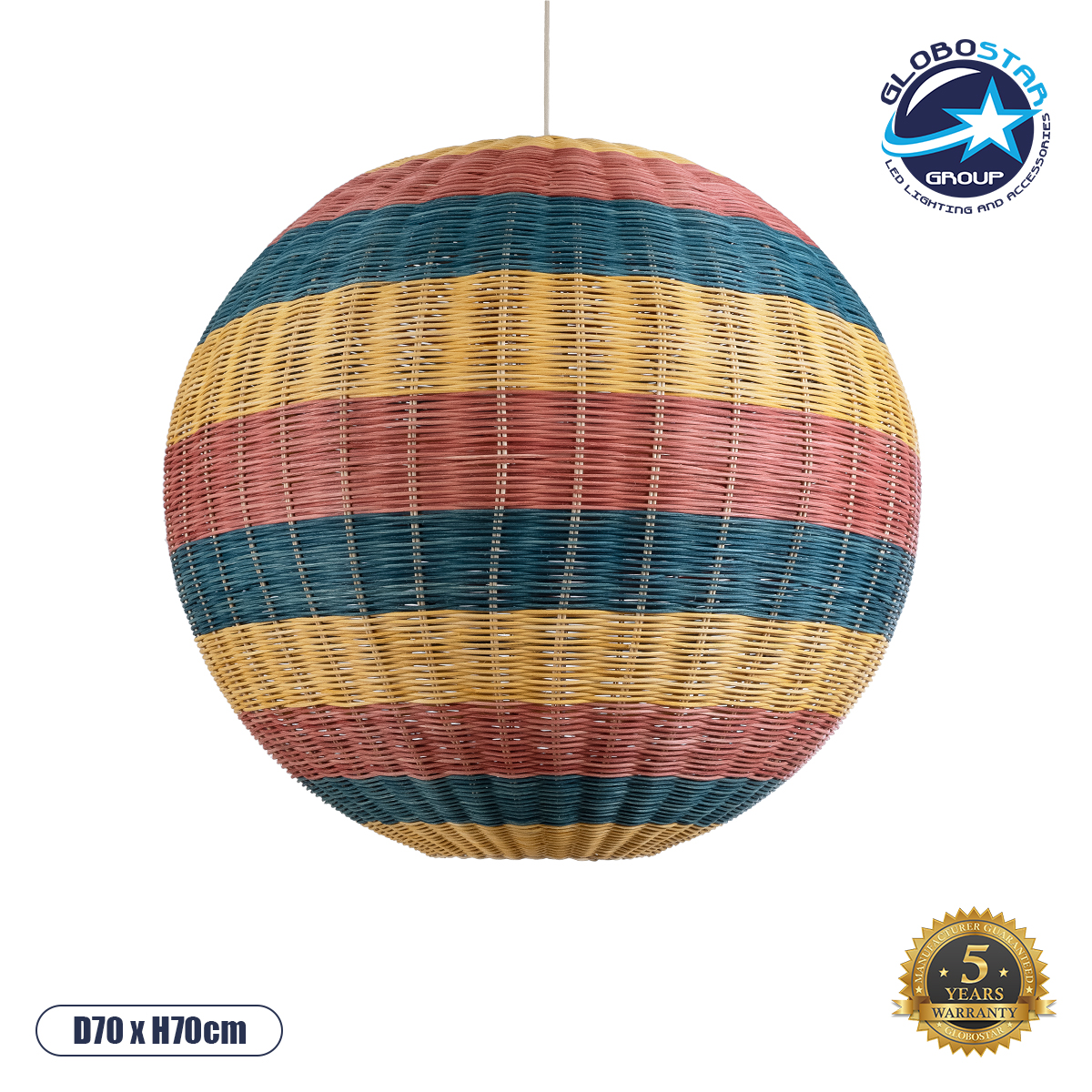 GLOBOSTAR® CABALLEROS 02063 Boho Κρεμαστό Φωτιστικό Οροφής με Ντουί 1 x E27 AC 220-240V IP20 – Πολύχρωμο – Μ70 x Π70 x Υ70cm