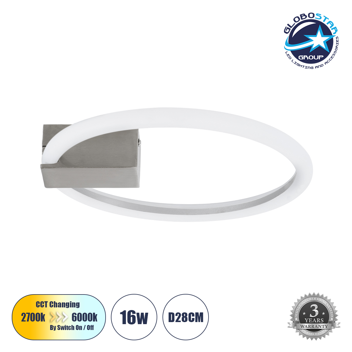 GLOBOSTAR® CINDERELLA 60979 Μοντέρνο Φωτιστικό Οροφής LED 16W 1792lm 360° AC 220-240V IP20 Ρυθμιζόμενο Λευκό CCT με On/Off 2700K/4500K/6000K – Lumileds SMD Chip – Νίκελ Βούρτσας – Μ28.5 x Π28.5 x Υ5cm – 3 Χρόνια Εγγύηση