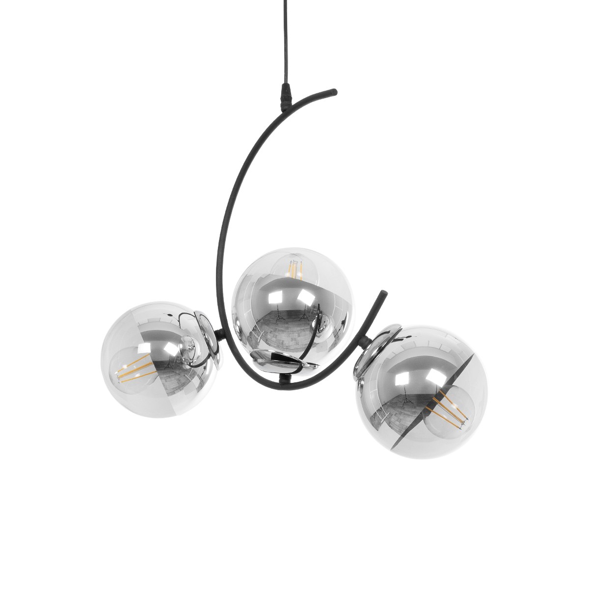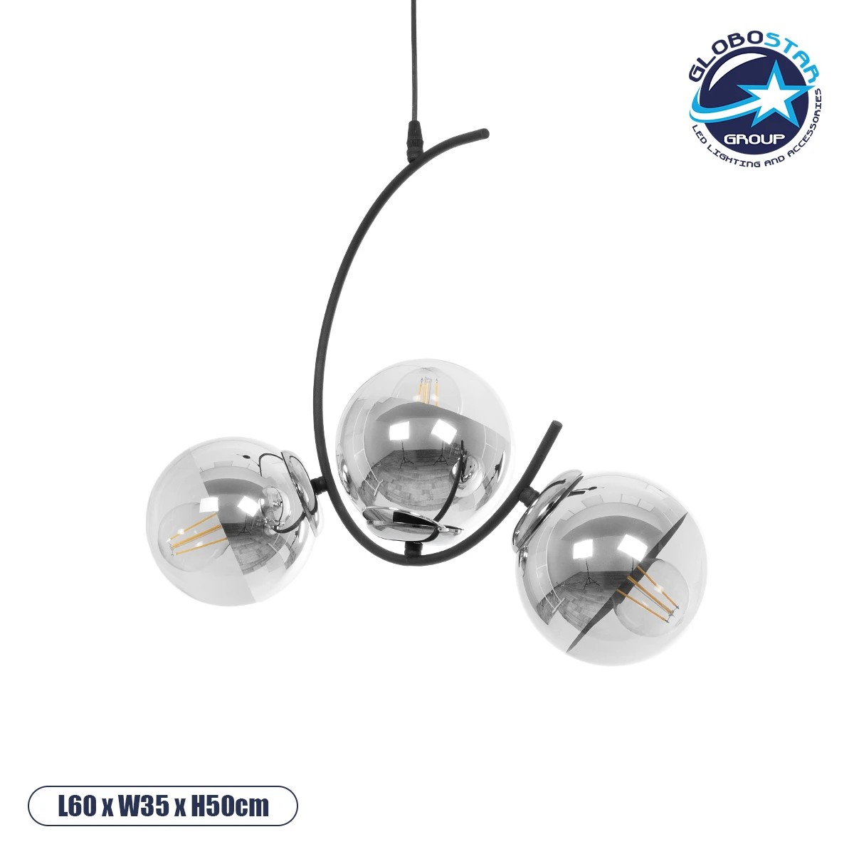GLOBOSTAR® CITY 202-0041 Μοντέρνο Κρεμαστό Φωτιστικό Οροφής με Ντουί 3 x E27 AC 220-240V IP20 – Μαύρο & Ασημί – Μ60 x Π35 x Υ50cm
