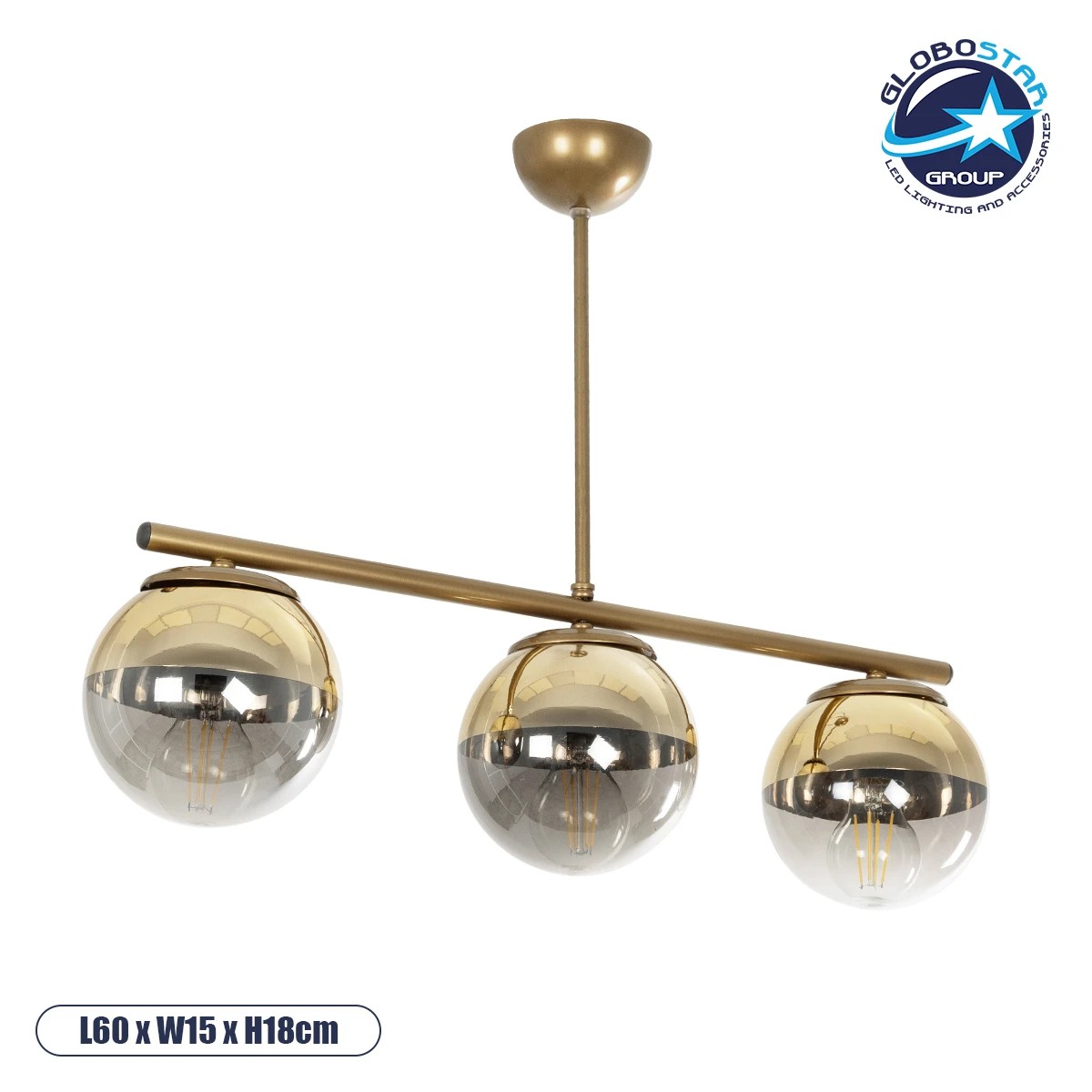 GLOBOSTAR® CITY 202-0045 Μοντέρνο Φωτιστικό Οροφής με Ντουί 3 x E27 AC 220-240V IP20 – Διάφανο & Χρυσό – Μ55 x Π15 x Υ43cm