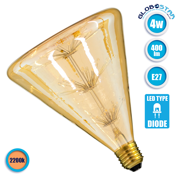 GLOBOSTAR® CONICAL 99213 Λάμπα E27 CNC150 LED 4W 400lm 360° AC 220-240V IP20 Ultra Θερμό Λευκό 2200K – Diode HP Filament Chip – Μελί – Μ14.3 x Π14.3 x Υ17.5cm – 3 Χρόνια Εγγύηση