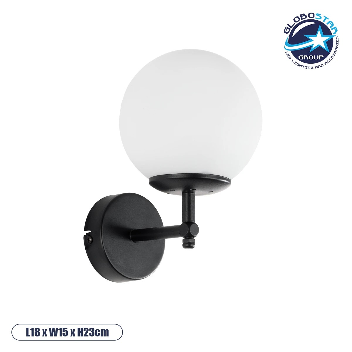 GLOBOSTAR® DALPH 203-0032 Vintage Φωτιστικό Τοίχου – Απλίκα με Ντουί 1 x E27 AC 220-240V IP20 – Μαύρο & Λευκό – M18 x Π15 x Υ23cm