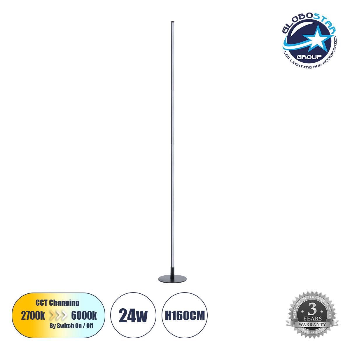 GLOBOSTAR® DALUMA 60470 Μοντέρνο Επιδαπέδιο Φωτιστικό LED 24W 2640lm 200° AC 220-240V IP20 Ρυθμιζόμενο Λευκό CCT με On/Off 2700K/4500K/6000K – Lumileds SMD Chip – Μαύρο Ματ – Μ18 x Π18 x Υ160cm – 3 Χρόνια Εγγύηση
