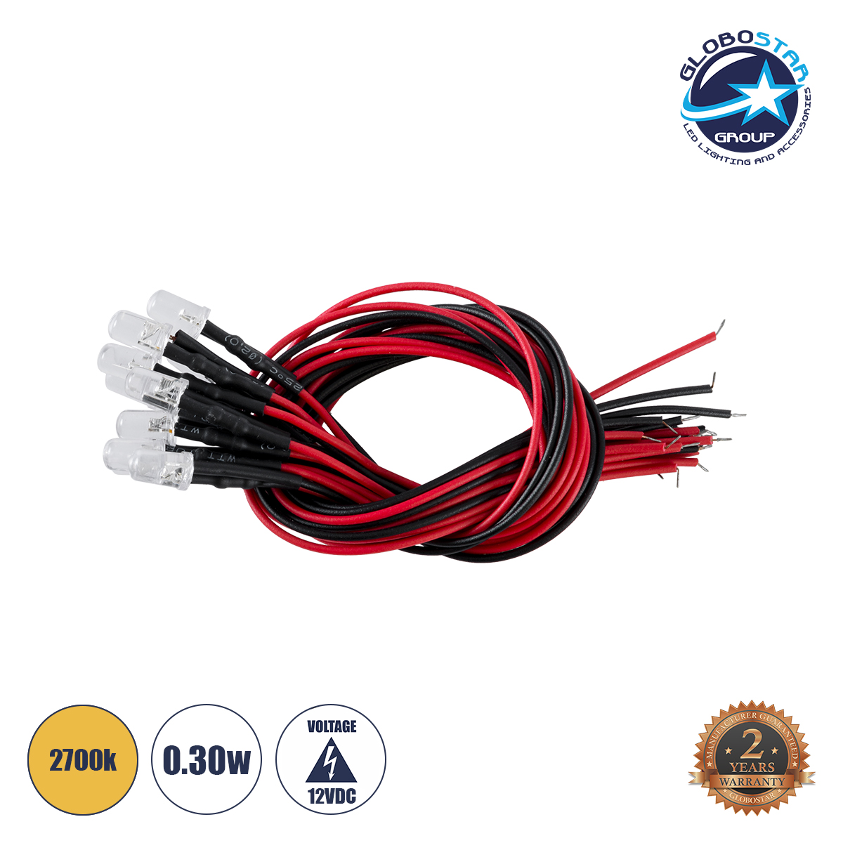 GLOBOSTAR® DIODECHIP 73731 Δίοδος LED 0.3W 24lm 90° DC 12V Αδιάβροχο IP65 Θερμό Λευκό 2700K Dimmable – Μ0.5 x Π0.5 x Υ20cm – Πακέτο 10 Τεμαχίων – 2 Χρόνια Εγγύηση