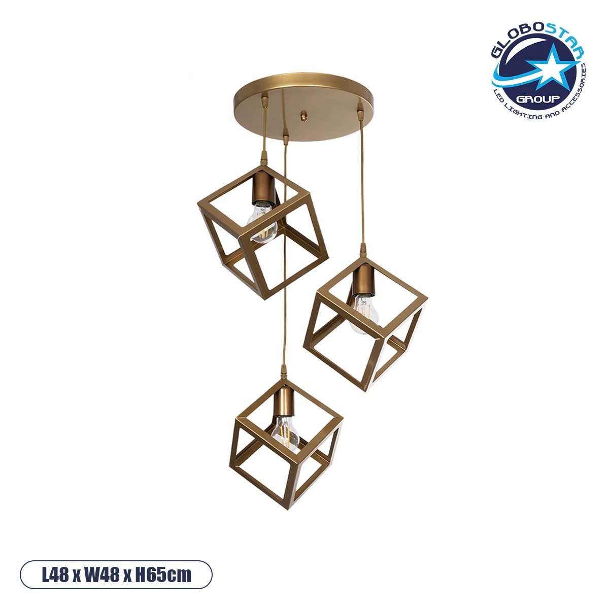 GLOBOSTAR® DISE 201-0057 Μοντέρνο Κρεμαστό Φωτιστικό Οροφής με Ντουί 3 x E27 AC 220-240V IP20 – Χρυσό – Μ48 x Π48 x Υ65cm