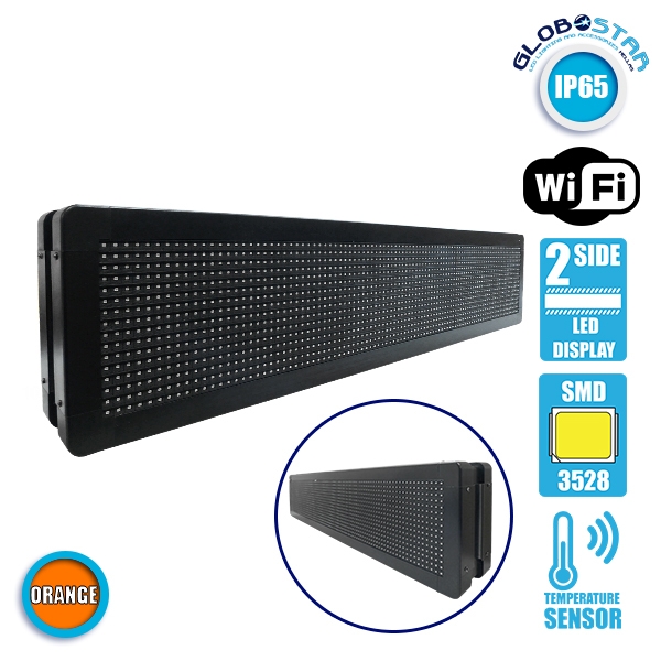 GLOBOSTAR® DISPLAY 90304 Κυλιόμενη Ψηφιακή Επιγραφή P10 Διπλής Όψης LED AC 220-240V Αδιάβροχο IP65 Πορτοκαλί – WiFi Control μέσω FK APP – Αισθητήρας Θερμοκρασίας & Υγρασίας – Μ104 x Π12 x Υ20cm – 2 Χρόνια Εγγύηση