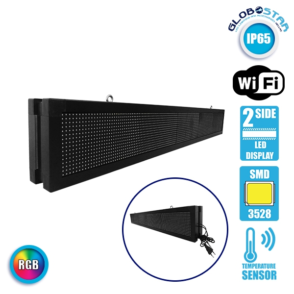 GLOBOSTAR® DISPLAY 90315 Κυλιόμενη Ψηφιακή Επιγραφή P10 Διπλής Όψης LED AC 220-240V Αδιάβροχο IP65 RGB – WiFi Control μέσω FK APP – Αισθητήρας Θερμοκρασίας & Υγρασίας – Μ168 x Π12 x Υ24cm – 2 Χρόνια Εγγύηση