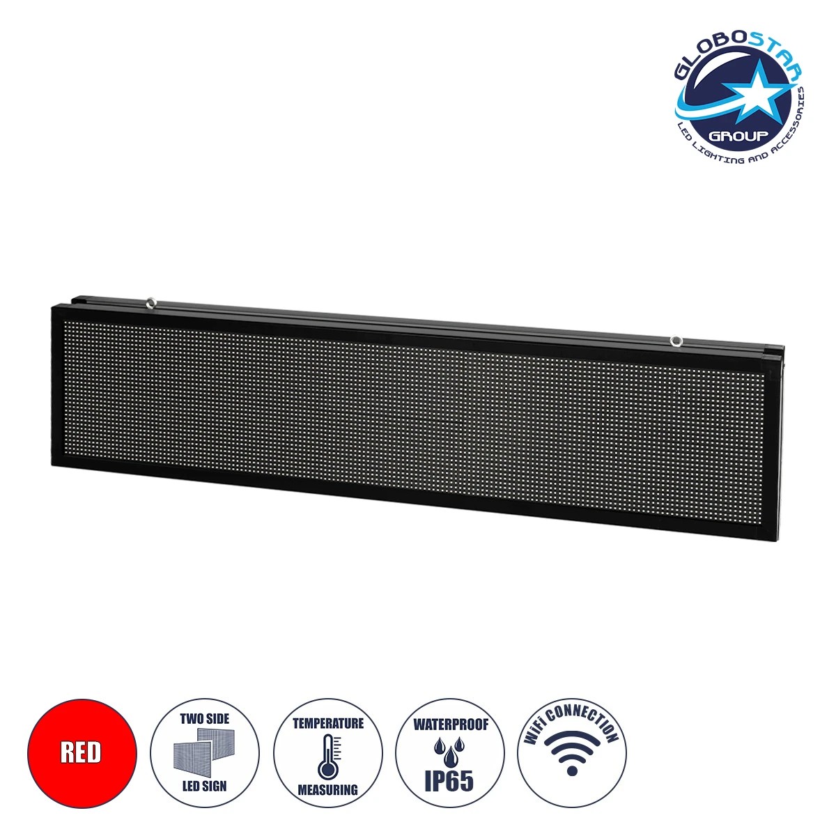 GLOBOSTAR® DISPLAY 90331 Κυλιόμενη Ψηφιακή Επιγραφή P10 Διπλής Όψης LED AC 220-240V Αδιάβροχο IP65 Κόκκινο – WiFi Control μέσω FK APP – Αισθητήρας Θερμοκρασίας & Υγρασίας – Μ166 x Π11 x Υ38cm – 2 Χρόνια Εγγύηση