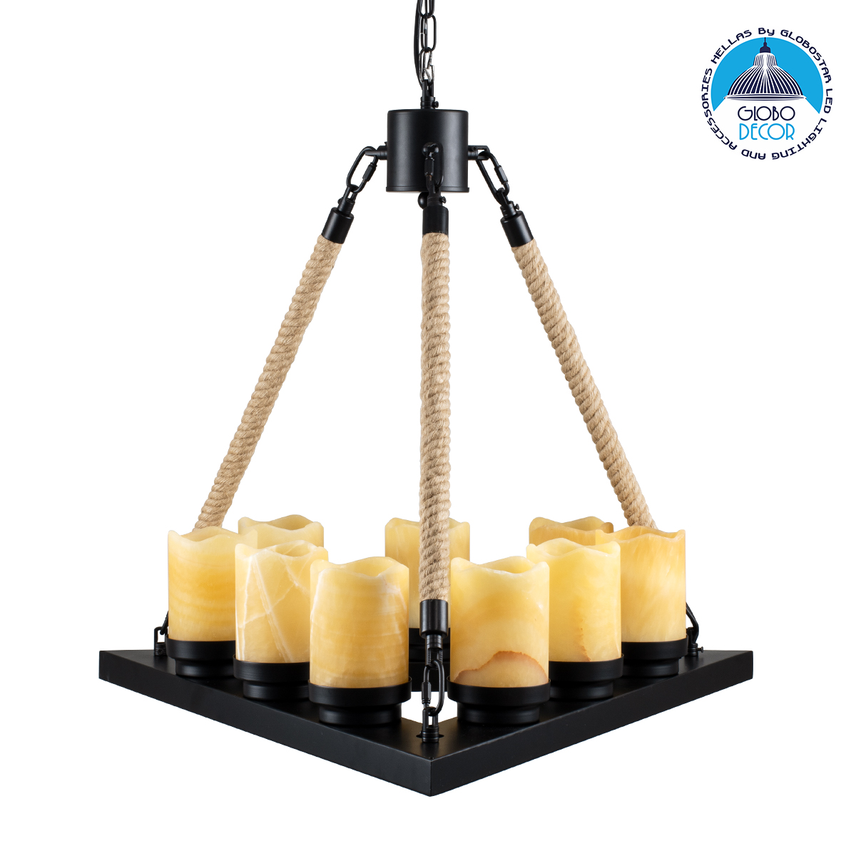 - Τεχνοτροπία Φωτιστικού: Μεταλλικό Πολυέλαιος με Σχοινί
