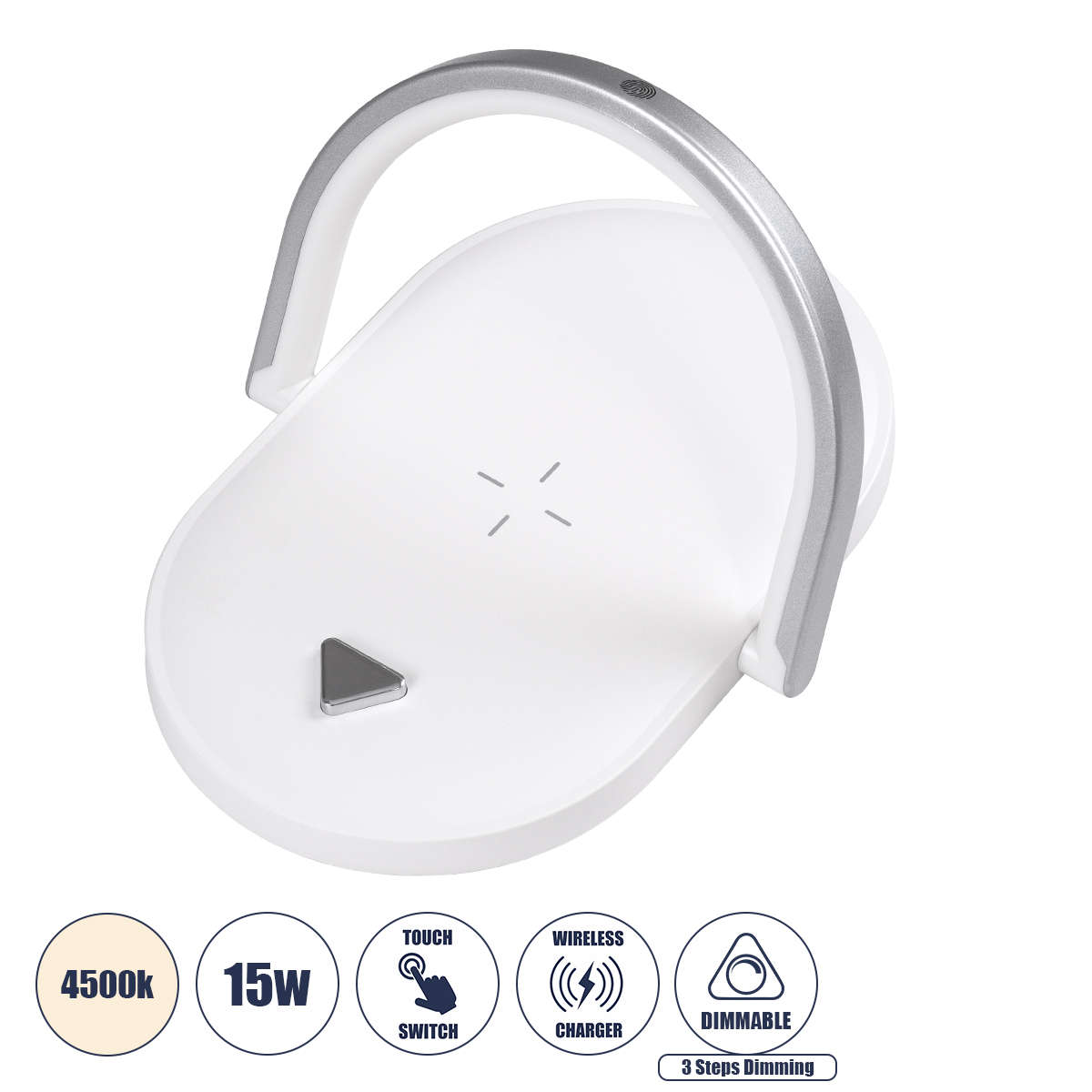 GloboStar® ECLIPSE 76559 Επιτραπέζιο Φωτιστικό Πορτατίφ LED 15W 1200lm 180° AC 220-240V IP20 Φυσικό Λευκό 4500K Dimmable Λευκό Πλαστικό – Μ17 x Π13 x Υ10cm – 2 Xρόνια Εγγύηση