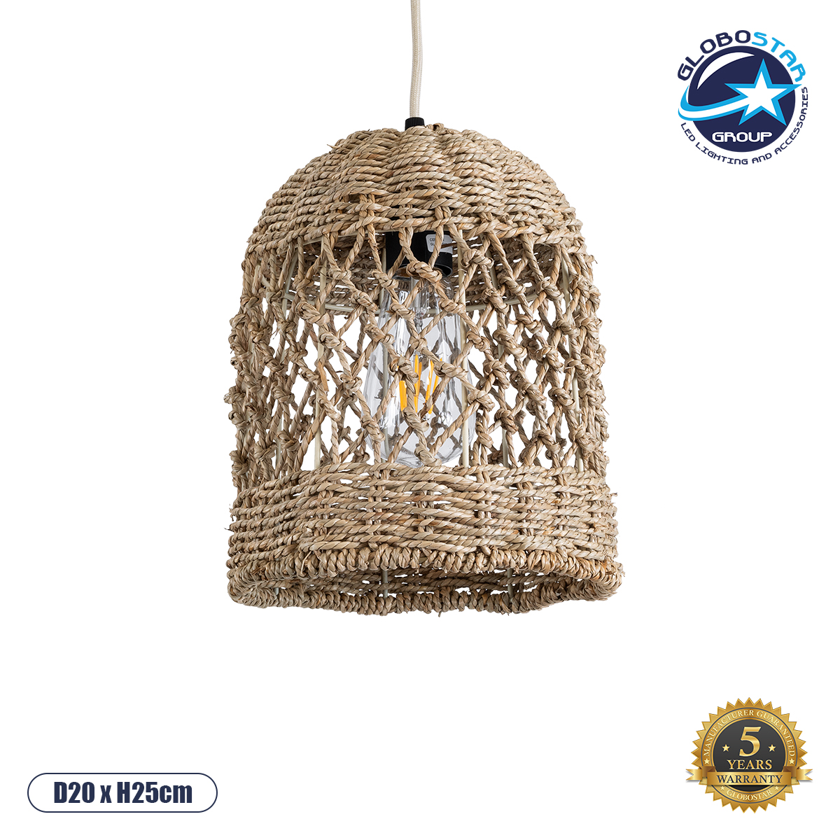 GLOBOSTAR® ECUADOR 02121 Boho Κρεμαστό Φωτιστικό Οροφής με Ντουί 1 x E27 AC 220-240V IP20 – Μπεζ – Μ20 x Π20 x Υ25cm