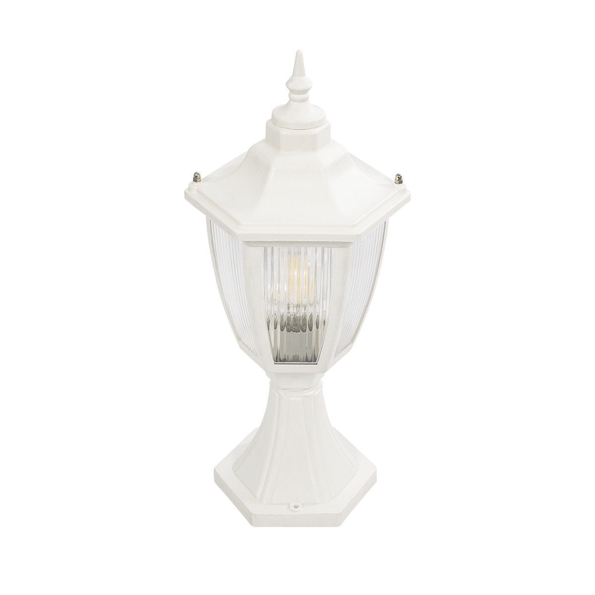 GloboStar® ENGLAND 202-0010 Vintage Επιδαπέδιο Φωτιστικό Φαναράκι Μονόφωτο 1 x E27 IP44 Λευκό & Διάφανο Πλαστικό – Μ20 x Π20 x Υ45cm