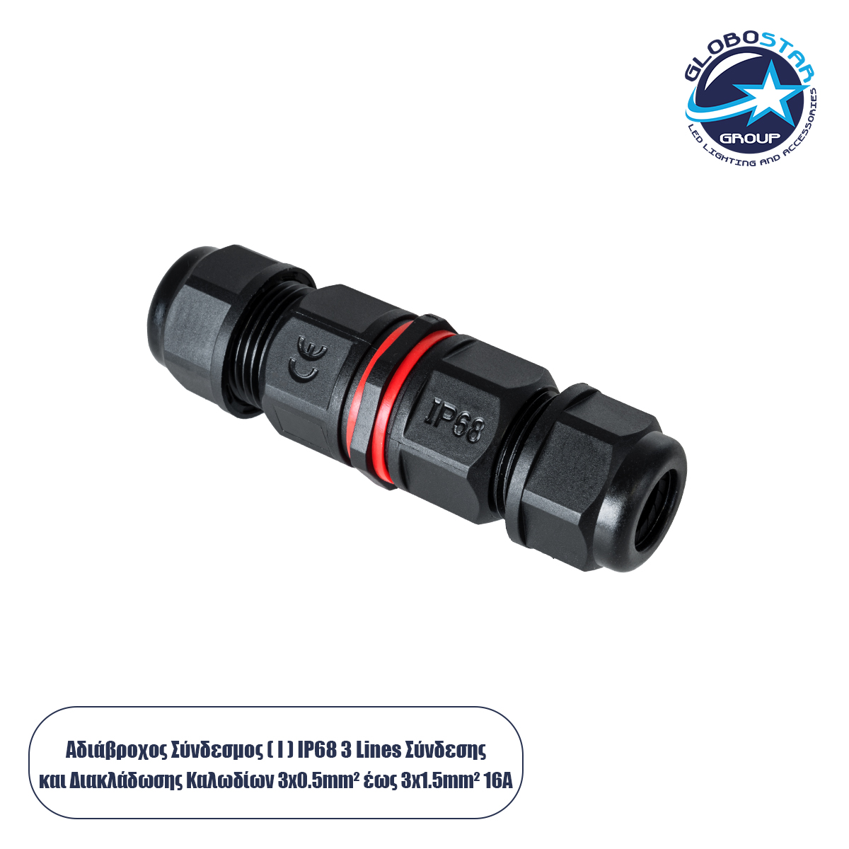 GLOBOSTAR® FAST-CONNECT 69920 Διπλός Ι Σύνδεσμος Ταχείας Σύνδεσης & Διακλάδωσης Καλωδίων – 1 x Είσοδος & 1 x Έξοδος – Εσωτερική Τριπλή Κλέμα με Συμβατή Διατομή Καλωδίων 3 x 0.5mm² έως 3 x 2.5mm² – 450V 16A Max Αδιάβροχο IP68 – Μαύρο – Μ9 x Π2.5 x Υ2.5cm
