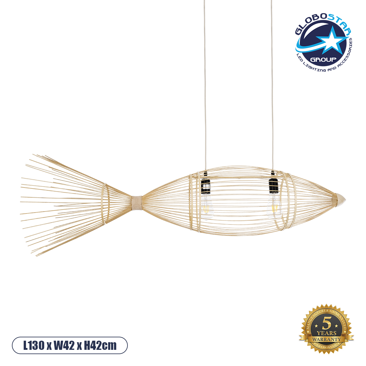GLOBOSTAR® FISH 01927 Boho Κρεμαστό Φωτιστικό Οροφής με Ντουί 2 x E27 AC 220-240V IP20 – Μπεζ – Μ130 x Π42 x Υ42cm