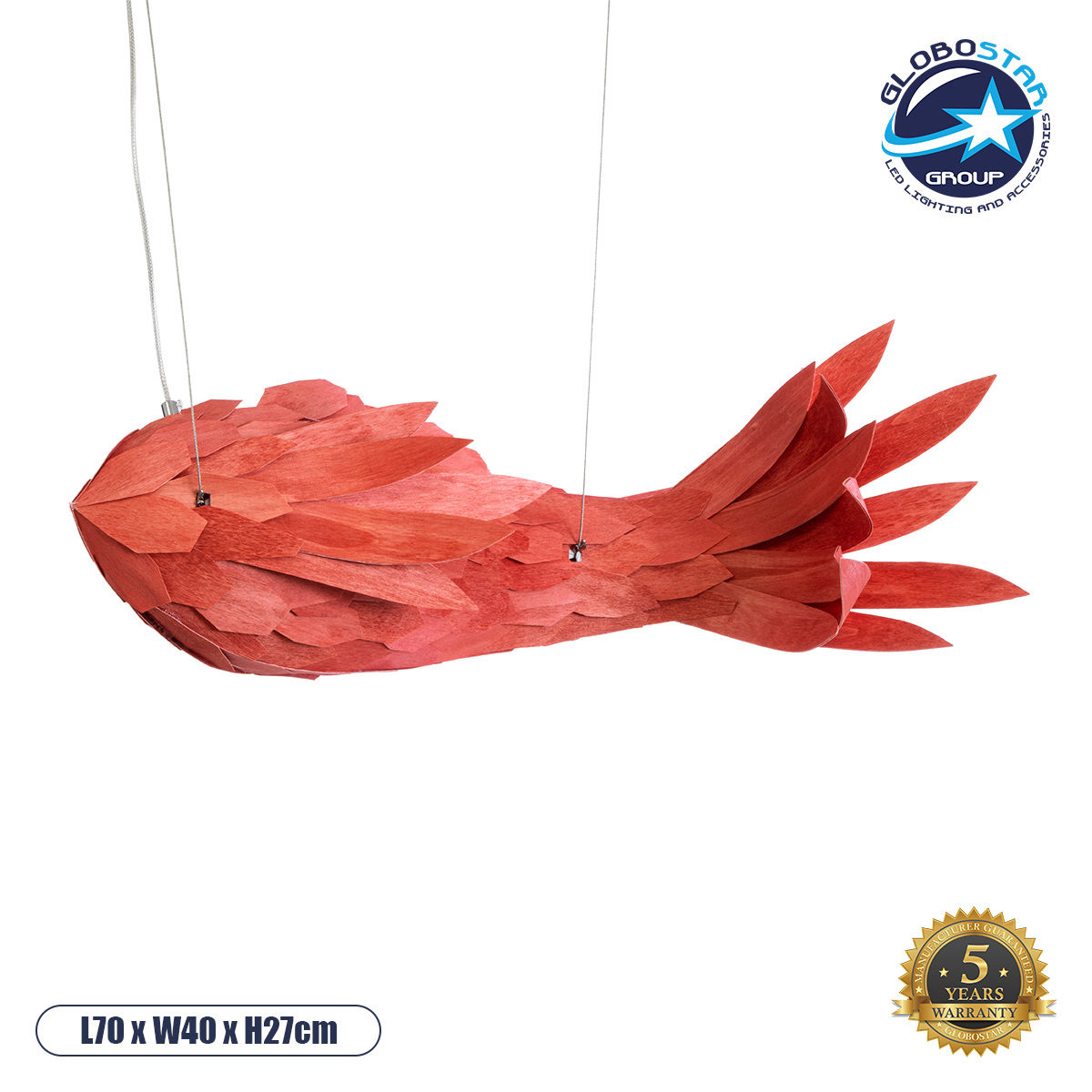 GLOBOSTAR® GOURAMI 02360 Μοντέρνο Κρεμαστό Φωτιστικό Οροφής με Ντουί 1 x E27 AC 220-240V IP20 – Κόκκινο – Μ70 x Π40 x Υ27cm