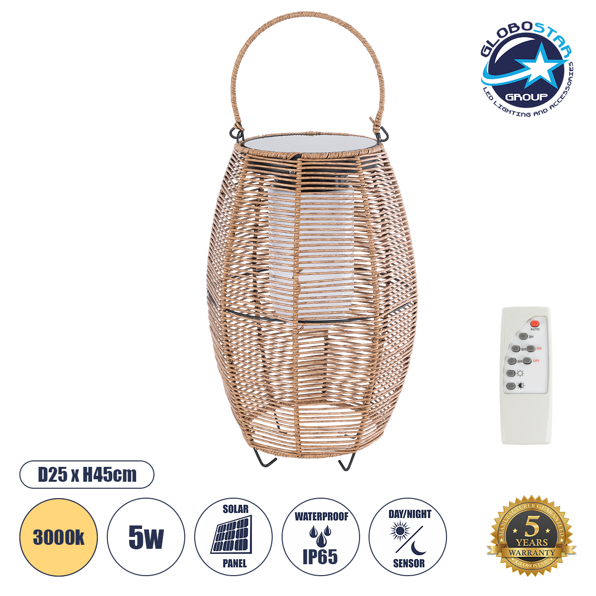 GLOBOSTAR® HESPELER 02305 Boho Επιδαπέδιο Φωτιστικό LED 5W 200lm 180° με Φωτοβολταϊκό Panel 3.6V 0.1W με Αισθητήρα Ημέρας/Νύχτας Αδιάβροχο IP65 Θερμό Λευκό 2700K – Μπεζ – Μ25 x Π25 x Υ45cm – 2 Χρόνια Εγγύηση