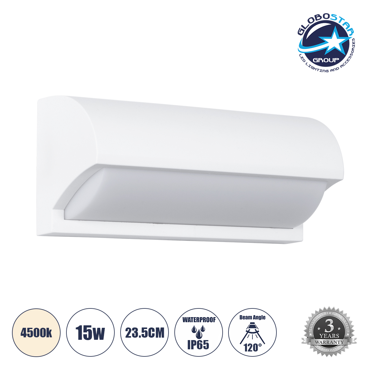 GLOBOSTAR® HORIZON 60691 Μοντέρνο Φωτιστικό Τοίχου – Απλίκα LED 15W 1575lm 120° AC 220-240V Αδιάβροχο IP65 Φυσικό Λευκό 4500K – Bridgelux SMD Chip – Λευκό Ματ – Μ23.5 x Π11 x Υ10cm – 3 Χρόνια Εγγύηση