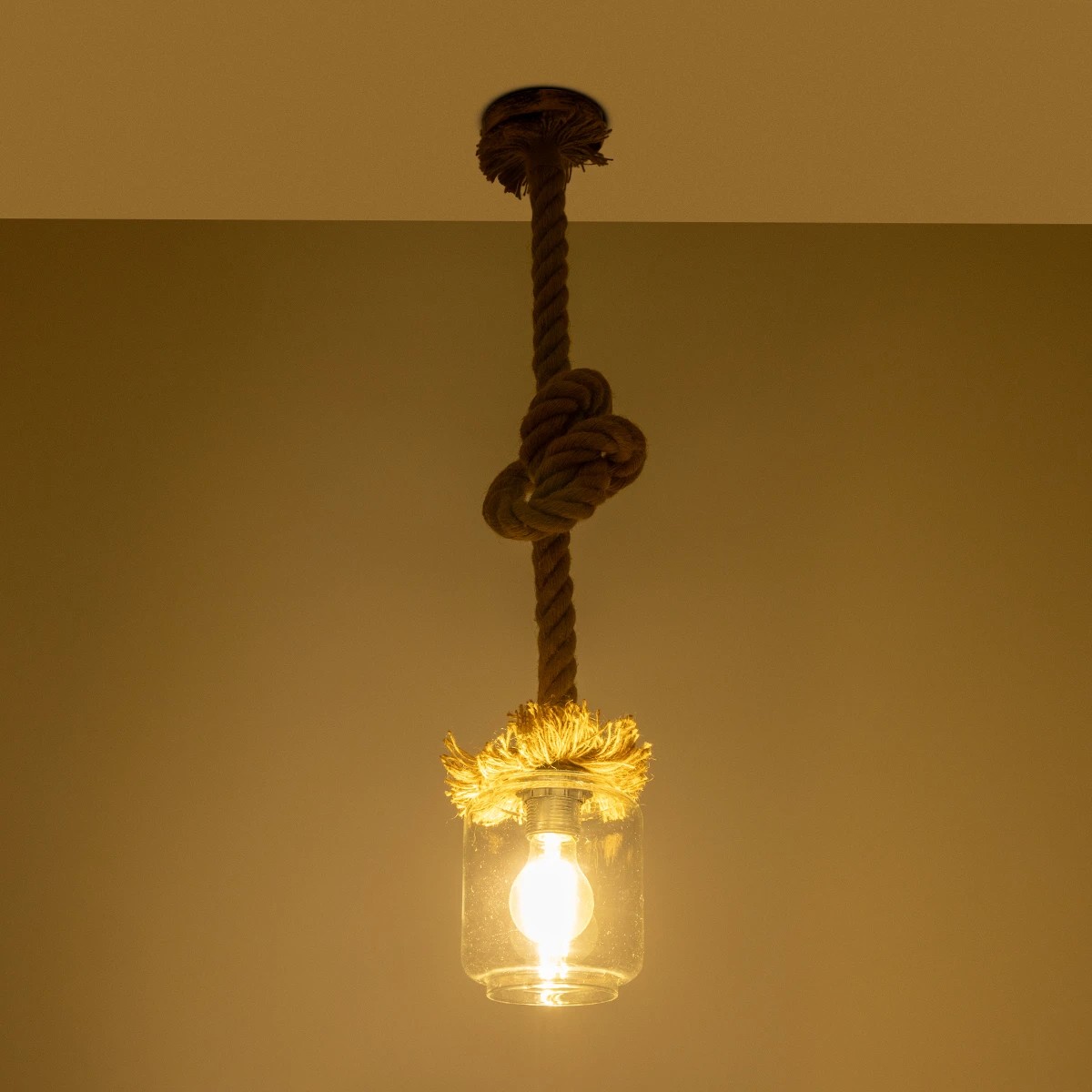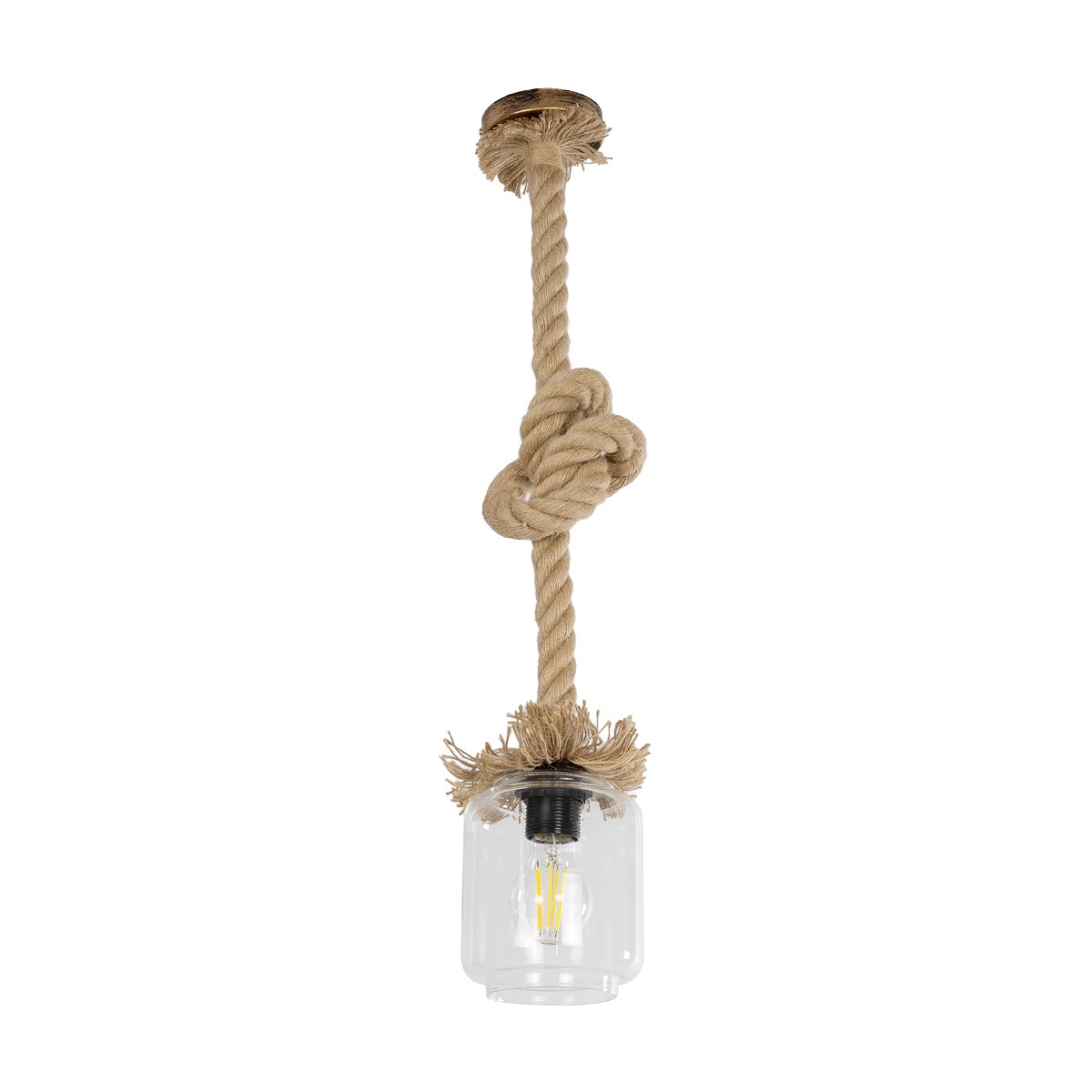 GLOBOSTAR® JAM 999-0116 Vintage Κρεμαστό Φωτιστικό Οροφής με Ντουί 1 x E27 AC 220-240V IP20 – Διάφανο & Μπεζ – Μ13 x Π13 x Υ125cm