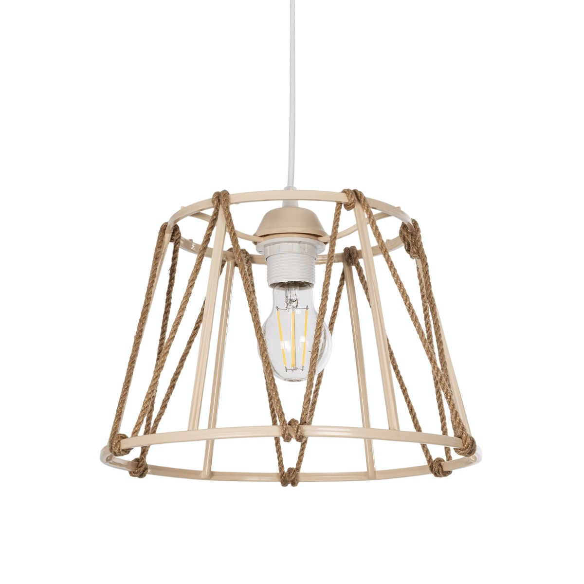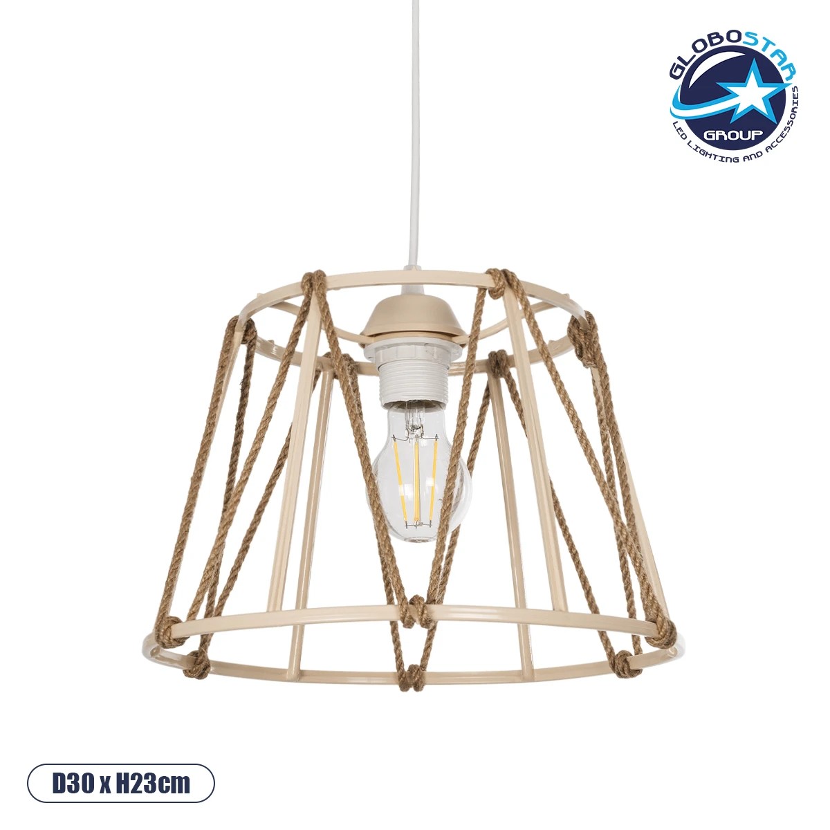 GLOBOSTAR® JUTE 203-0092 Μοντέρνο Κρεμαστό Φωτιστικό Οροφής με Ντουί 1 x E27 AC 220-240V IP20 – Μπεζ – Μ30 x Π30 x Υ23cm