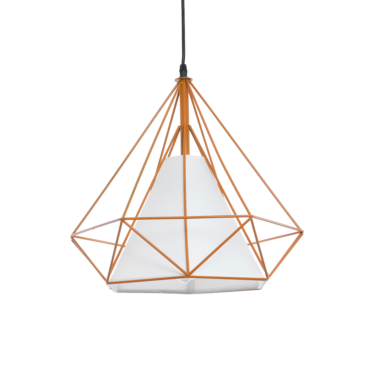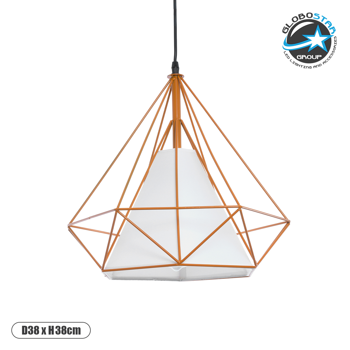 GloboStar® KAIRI 01621 Μοντέρνο Industrial Κρεμαστό Φωτιστικό Οροφής Μονόφωτο Πορτοκαλί με Άσπρο Ύφασμα Μεταλλικό Πλέγμα Φ38 x Υ39cm