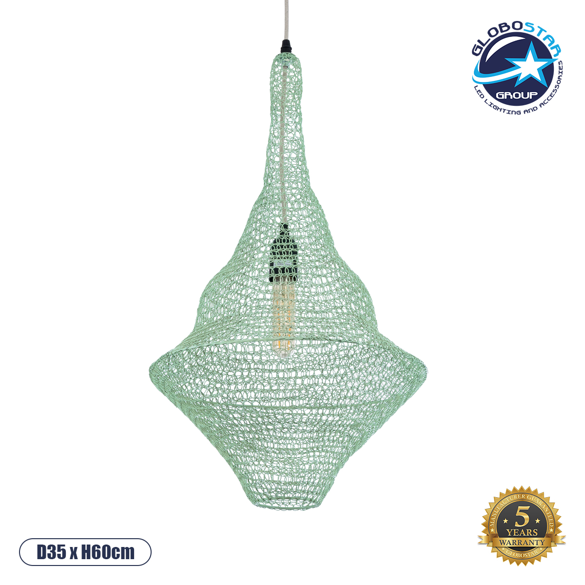 GLOBOSTAR® KENTUCKY 01873 Vintage Κρεμαστό Φωτιστικό Οροφής με Ντουί 1 x E27 AC 220-240V IP20 – Τιρκουάζ – Μ35 x Π35 x Υ60cm