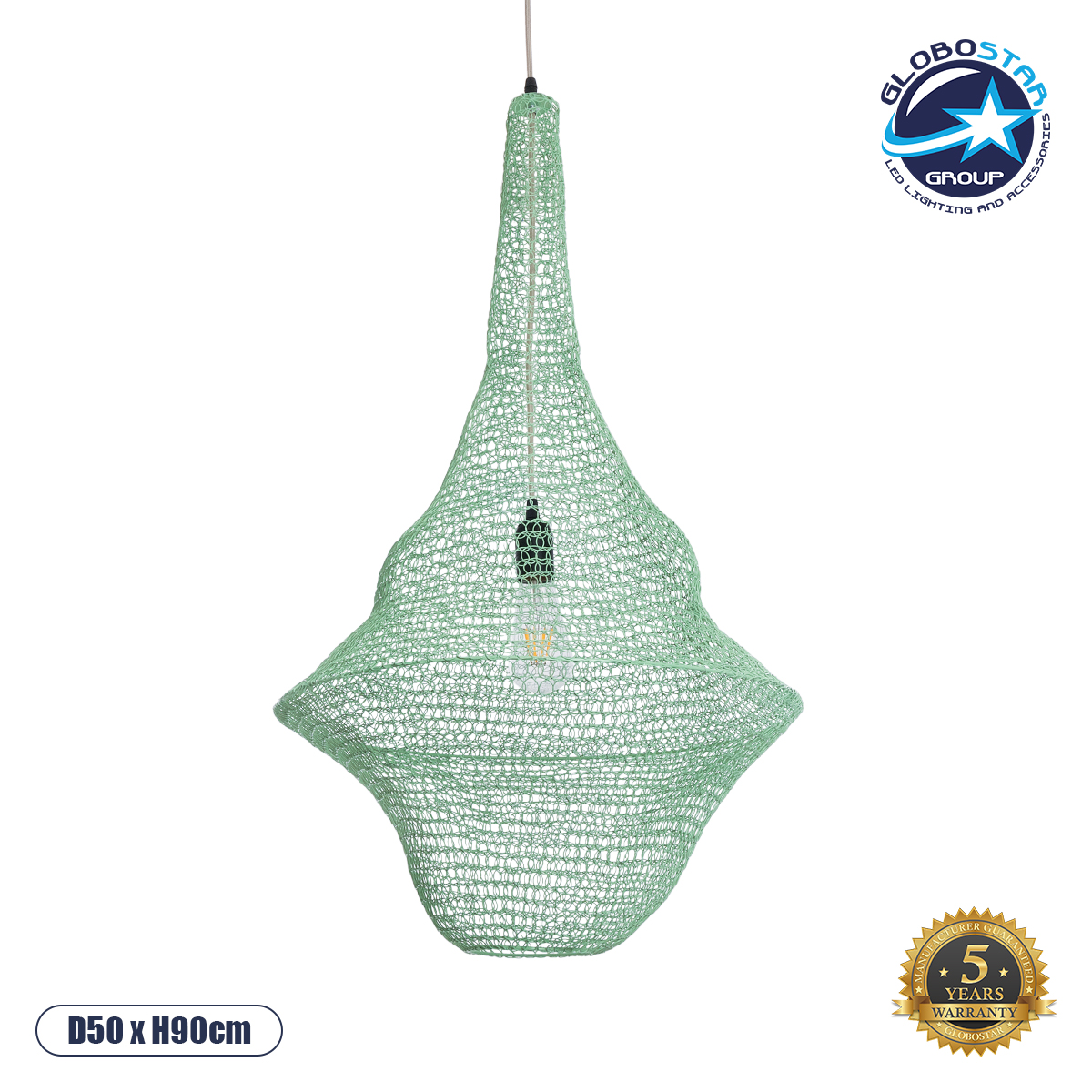 GLOBOSTAR® KENTUCKY 01876 Vintage Κρεμαστό Φωτιστικό Οροφής με Ντουί 1 x E27 AC 220-240V IP20 – Τιρκουάζ – Μ50 x Π50 x Υ90cm