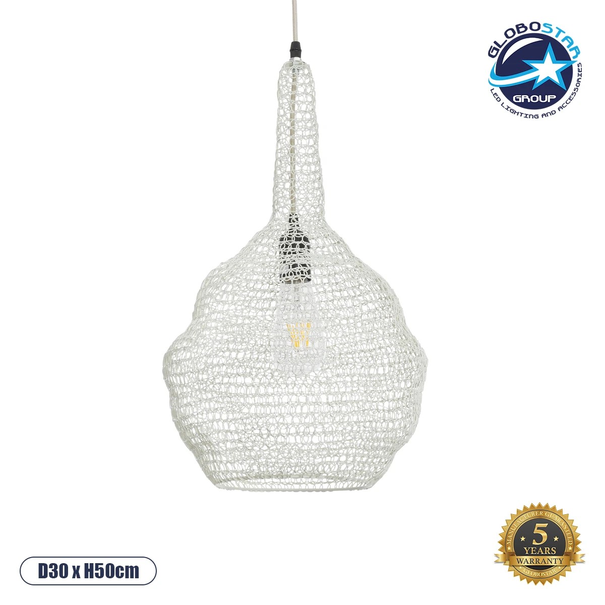 GLOBOSTAR® KENTUCKY 01880 Vintage Κρεμαστό Φωτιστικό Οροφής με Ντουί 1 x E27 AC 220-240V IP20 – Μπεζ – Μ30 x Π30 x Υ50cm
