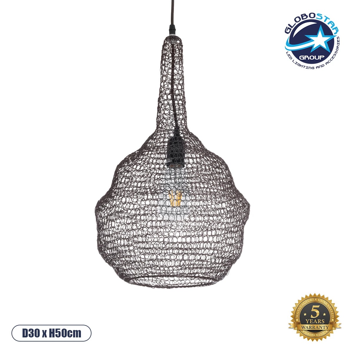 GLOBOSTAR® KENTUCKY 01881 Vintage Κρεμαστό Φωτιστικό Οροφής με Ντουί 1 x E27 AC 220-240V IP20 – Καφέ – Μ30 x Π30 x Υ50cm