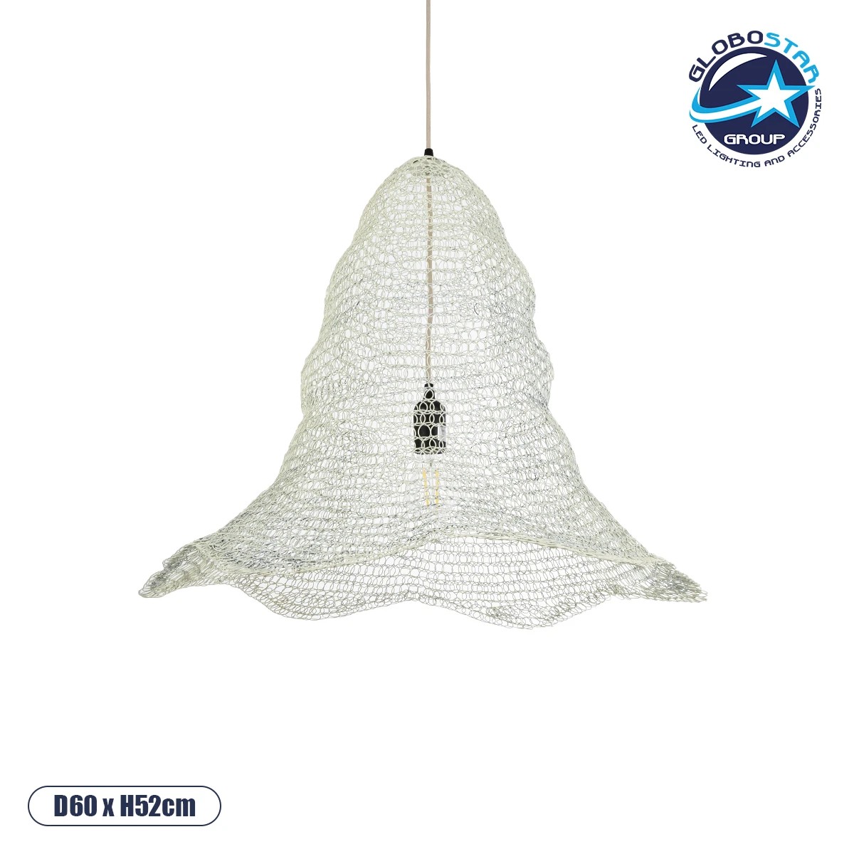 GLOBOSTAR® KENTUCKY 01892 Vintage Κρεμαστό Φωτιστικό Οροφής με Ντουί 1 x E27 AC 220-240V IP20 – Λευκό – Μ60 x Π60 x Υ52cm