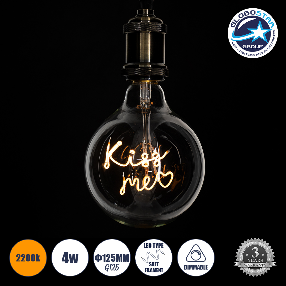 GLOBOSTAR® KISS ME 99257 Λάμπα E27 G125 LED 4W 340lm 360° AC 220-240V IP20 Ultra Θερμό Λευκό 2200K Dimmable – Filament Chip – Διάφανο – Μ12.5 x Π12.5 x Υ18cm – 3 Χρόνια Εγγύηση