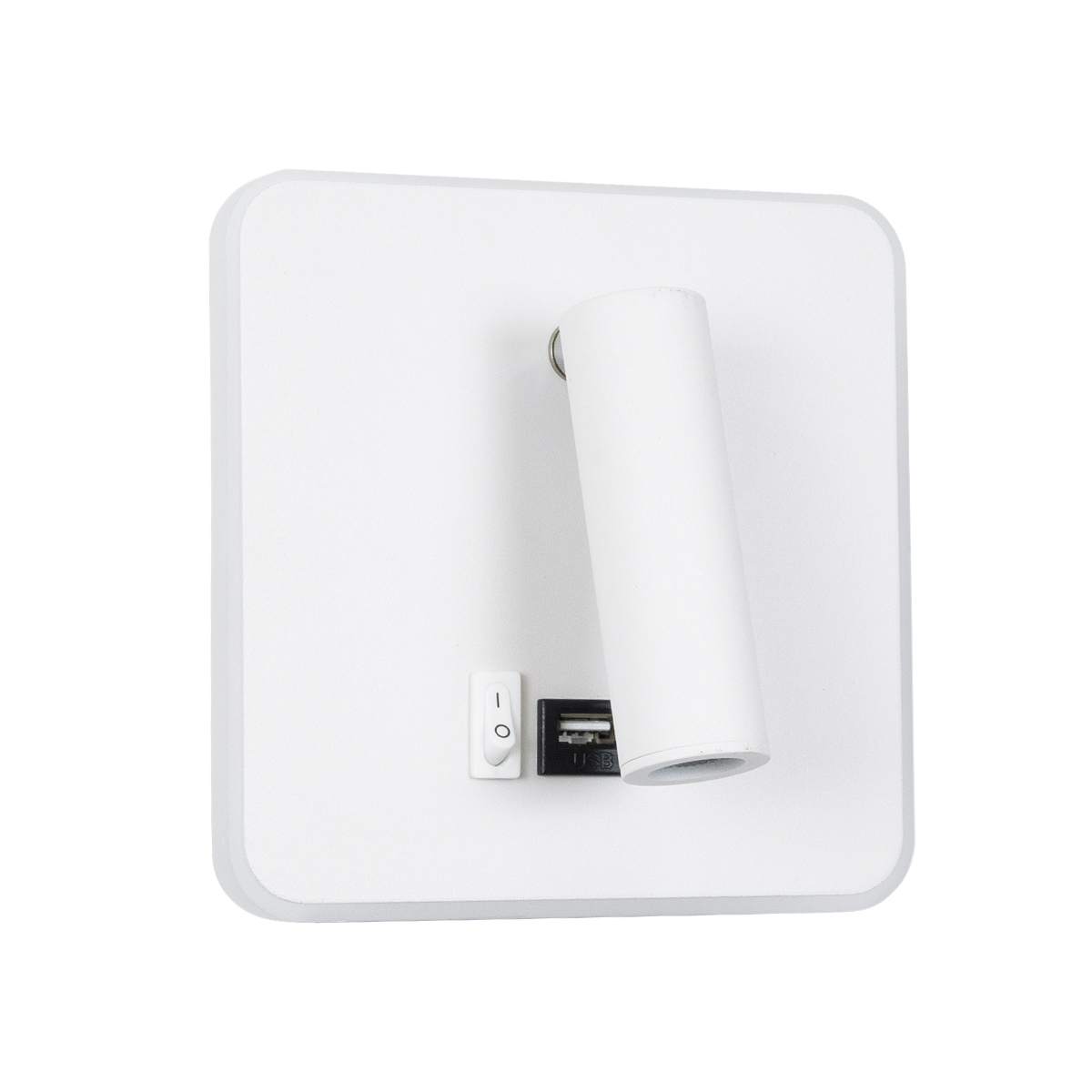 GLOBOSTAR® LADY-S 60943 Μοντέρνο Φωτιστικό Τοίχου – Απλίκα Ξενοδοχείου Reading Light με Φορτιστή USB 3A LED 6W 600lm 36° & 360° AC 220-240V IP20 Φυσικό Λευκό 4500K – Bridgelux COB Chip & TÜV SÜD Driver – Λευκό Ματ – Μ15 x Π15 x Υ7cm – 3 Χρόνια Εγγύηση