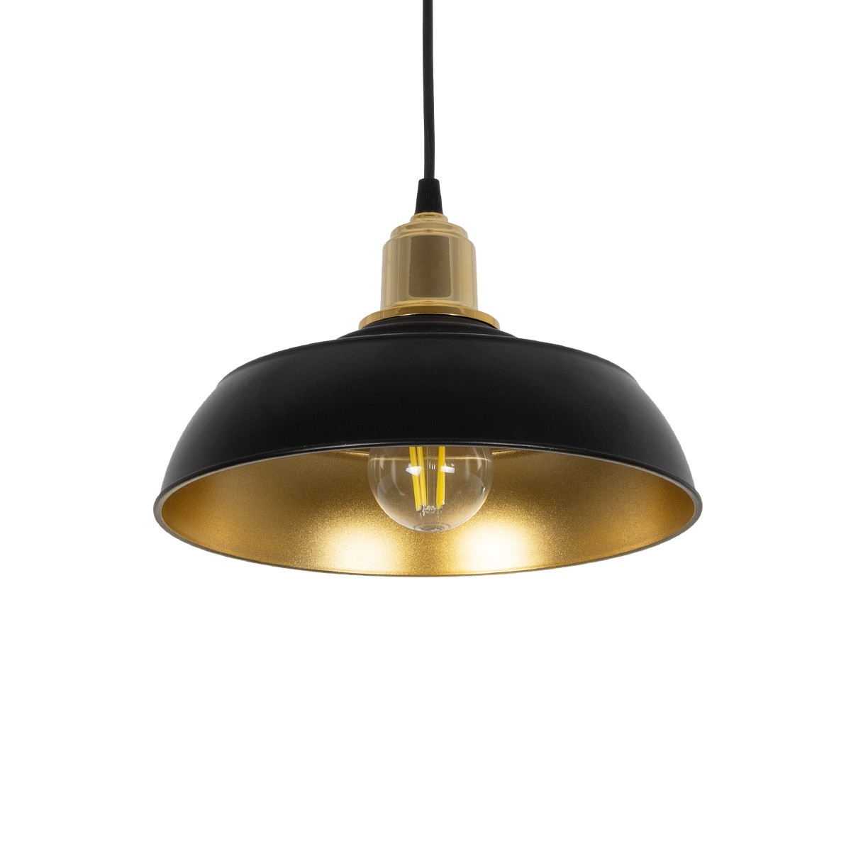 GLOBOSTAR® LOAN 203-0279 Μοντέρνο Κρεμαστό Φωτιστικό Οροφής με Ντουί 1 x E27 AC 220-240V IP20 – Μαύρο & Χρυσό – Μ25.5 x Π25.5 x Υ17cm