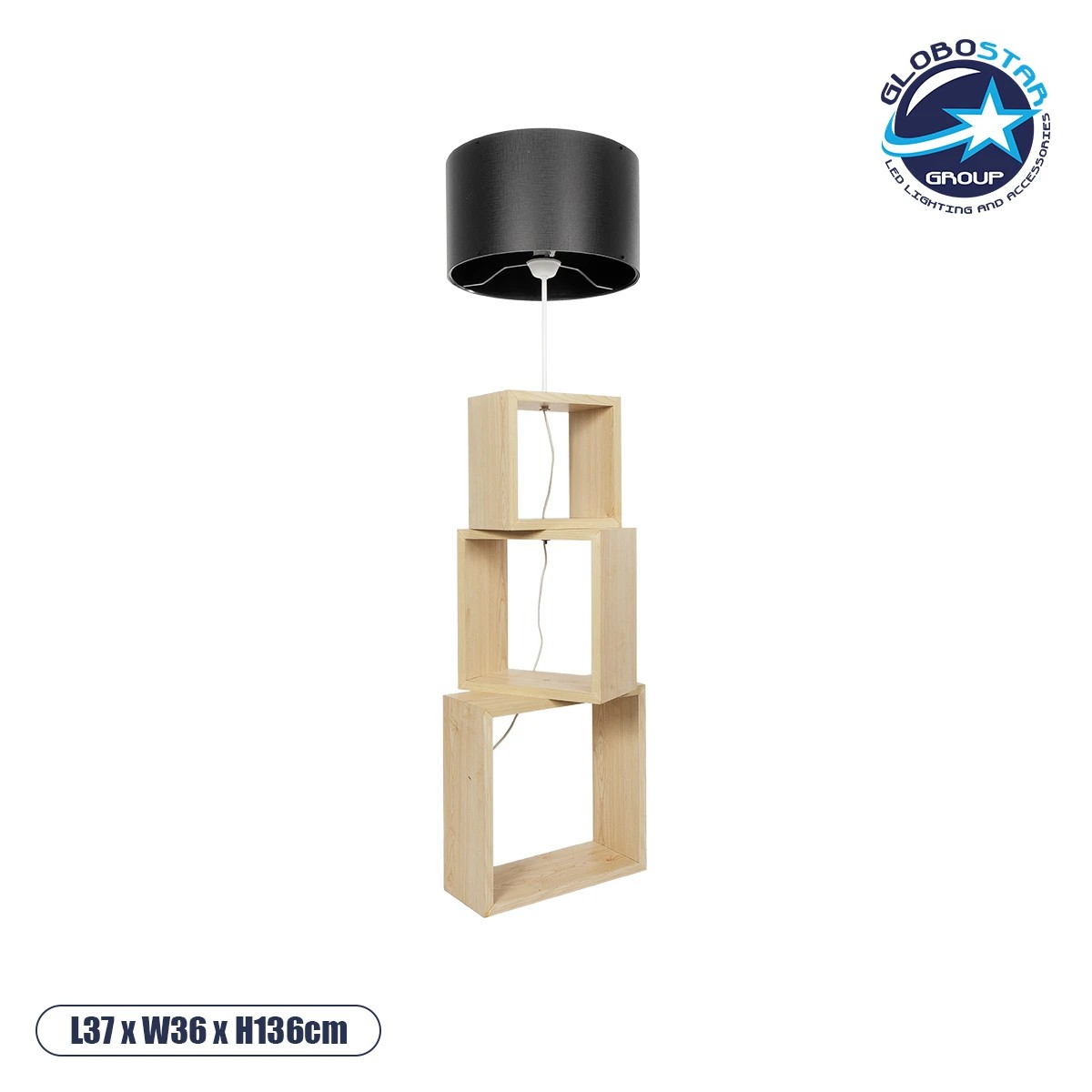 GloboStar® LUMO 201-0070 Μοντέρνο Επιδαπέδιο Φωτιστικό Μονόφωτο 1 x E27 IP20 Μπεζ Ξύλο με Μαύρο Ύφασμα – Μ37 x Π36 x Υ136cm