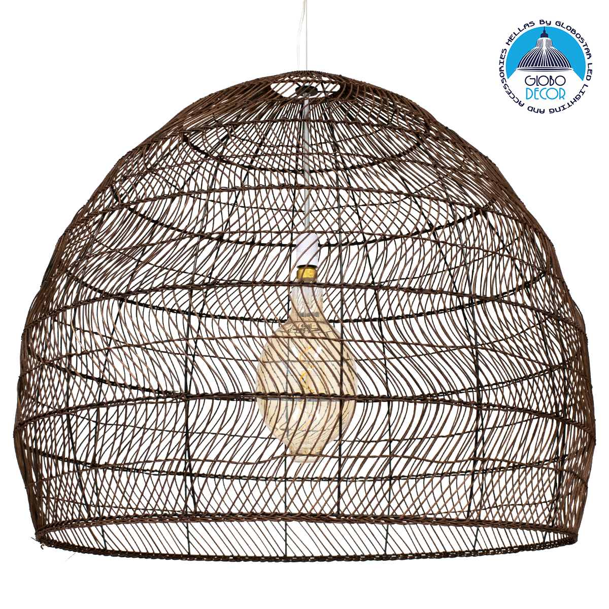 GLOBOSTAR® MALIBU 00967 Boho Κρεμαστό Φωτιστικό Οροφής με Ντουί 1 x E27 AC 220-240V IP20 – Καφέ – Μ100 x Π100 x Y86cm