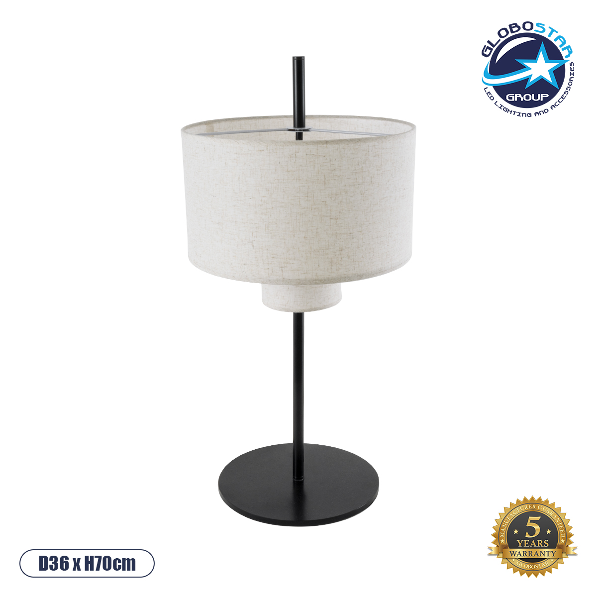 GloboStar® MARIGOLD 02227 Μοντέρνο Επιτραπέζιο Φωτιστικό Πορτατίφ Τρίφωτο 3 x E27 IP20 Μαύρο Μέταλλο με Μπεζ Ύφασμα – M36 x Π36 x Υ70cm