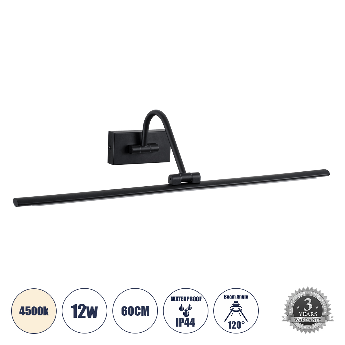 GLOBOSTAR® MIRA 60432 Μοντέρνο Φωτιστικό Τοίχου – Απλίκα Καθρέπτη Μπάνιου LED 12W 1400lm 120° AC 220-240V IP44 Φυσικό Λευκό 4500K – Lumileds SMD Chip & TÜV SÜD Driver – Μαύρο Ματ – Μ60 x Π20 x Υ13cm – 3 Χρόνια Εγγύηση