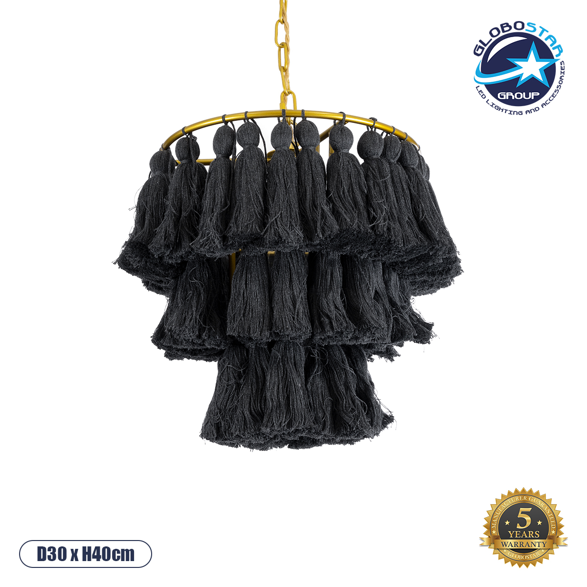 GLOBOSTAR® MISSOULA 02087 Boho Κρεμαστό Φωτιστικό Οροφής με Ντουί 1 x E27 AC 220-240V IP20 – Μαύρο & Χρυσό – Μ30 x Π30 x Υ40cm