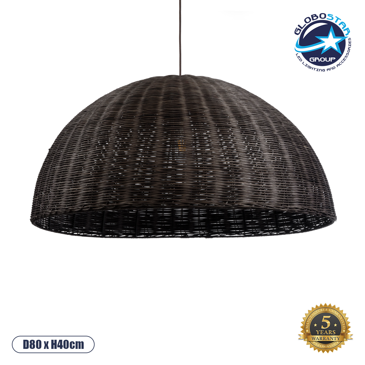 GLOBOSTAR® MONTANA 02382 Boho Κρεμαστό Φωτιστικό Οροφής με Ντουί 1 x E27 AC 220-240V IP20 – Καφέ – Μ80 x Π80 x Υ40cm