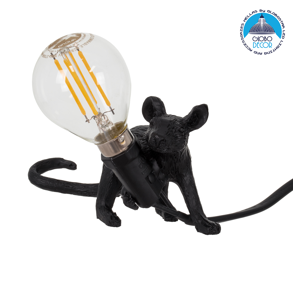 GLOBOSTAR® MOUSE 00675 Vintage Επιτραπέζιο Φωτιστικό Πορτατίφ με Ντουί 1 x E12 AC 220-240V IP20 – Μαύρο – Μ13 x Π4 x Υ7cm