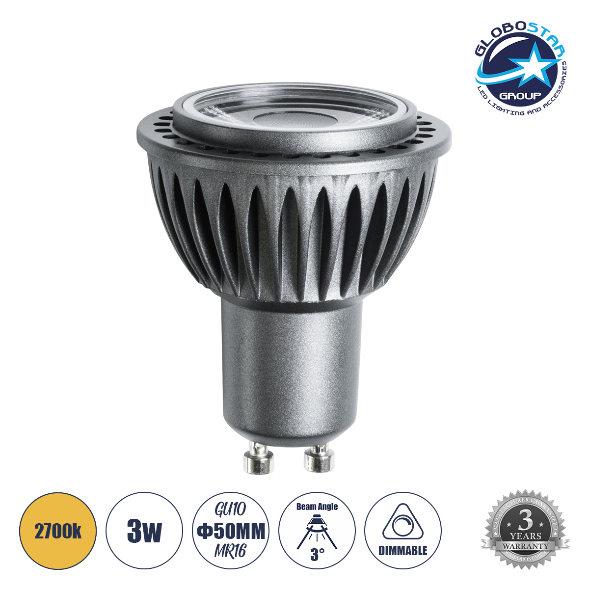 GLOBOSTAR® NANOBEAM 90600 Σποτ GU10 MR16 LED 3W 390lm 3° AC 220-240V IP20 Θερμό Λευκό 2700K Dimmable – CREE XPE – Μ5 x Π5 x Υ6cm – 3 Χρόνια Εγγύηση