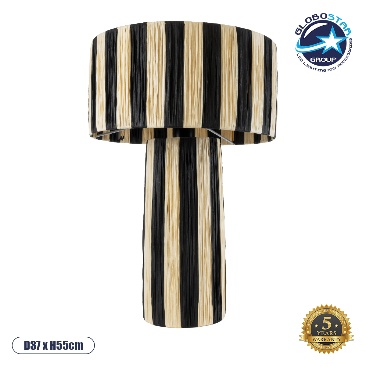 GLOBOSTAR® NASSAU 02234 Boho Επιτραπέζιο Φωτιστικό Πορτατίφ με Ντουί 1 x E27 AC 220-240V IP20 – Μπεζ & Μαύρο – Μ37 x Π37 x Υ55cm