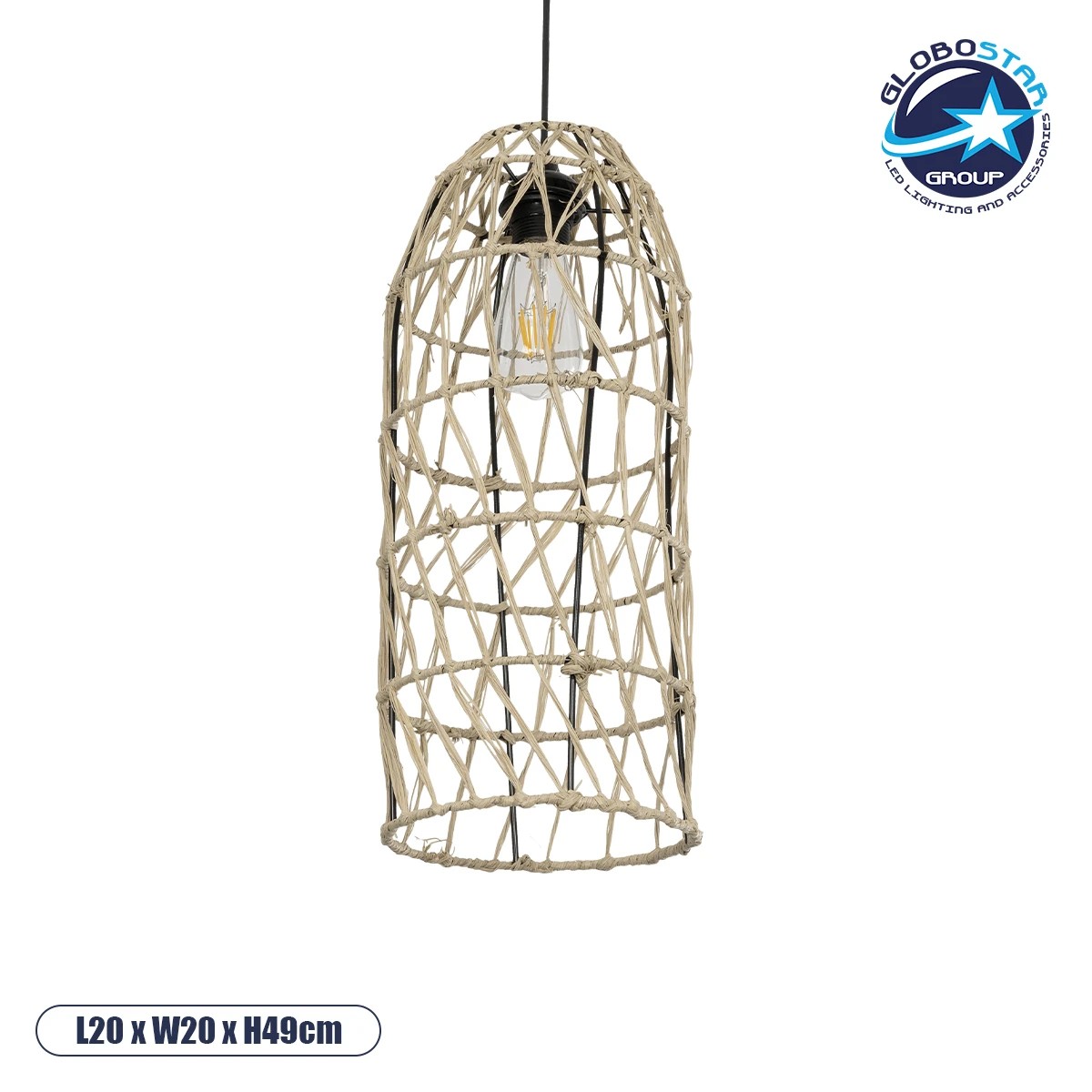 GLOBOSTAR® NETI 205-0024 Boho Κρεμαστό Φωτιστικό Οροφής με Ντουί 1 x E27 AC 220-240V IP20 – Μπεζ – M20 x Π20 x Υ49cm