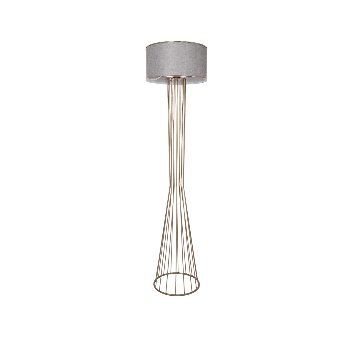 GloboStar® NOVA 201-0040 Μοντέρνο Επιδαπέδιο Φωτιστικό 1 x E27 IP20 Χρυσό Μεταλλό με Μπεζ Ύφασμα – Μ36 x Π36 x Υ148cm
