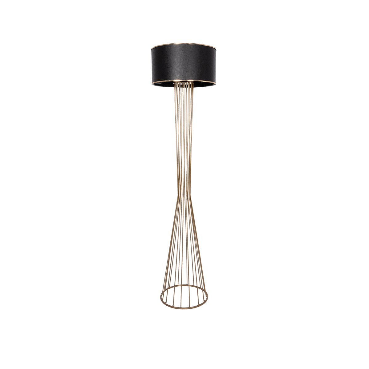 GloboStar® NOVA 201-0041 Μοντέρνο Επιδαπέδιο Φωτιστικό 1 x E27 IP20 Χρυσό Μέταλλο με Μαύρο Ύφασμα – Μ36 x Π36 x Υ148cm